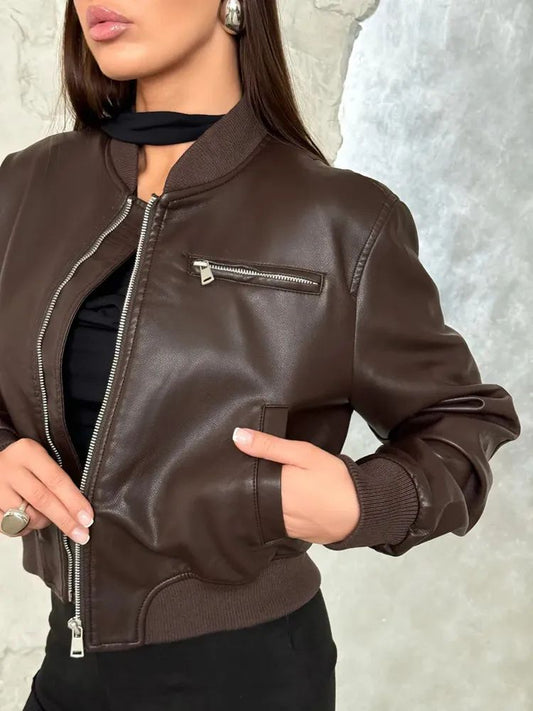 VALEN™ │Faux Leather Bomber Jacket