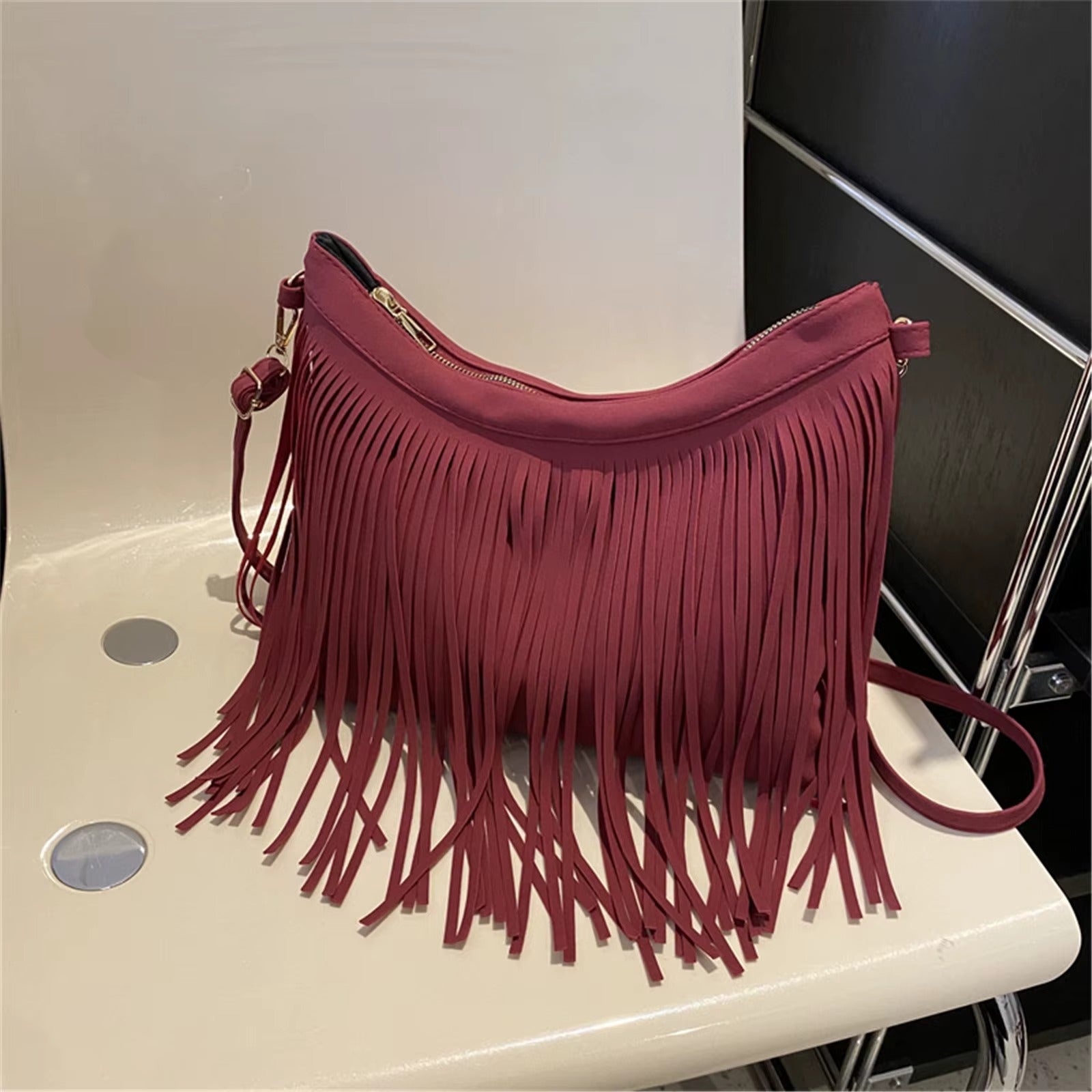 Features: ✓ Premium Vegan Leather Construction – Crafted with high-quality, cruelty-free vegan leather for a luxurious feel. ✓ Playful Tassels – Eye-catching tassels add a fun, bohemian flair. ✓ Adjustable Crossbody Strap – Offers comfort and flexibility for all-day wear. ✓ Spacious Interior – Designed to hold your essentials, with organized compartments for easy access. ✓ Compact yet Practical – A perfect size for both casual outings and evening events. ✓ Secure Zipper Closure – Keeps your items safe and secure while you're on the move.